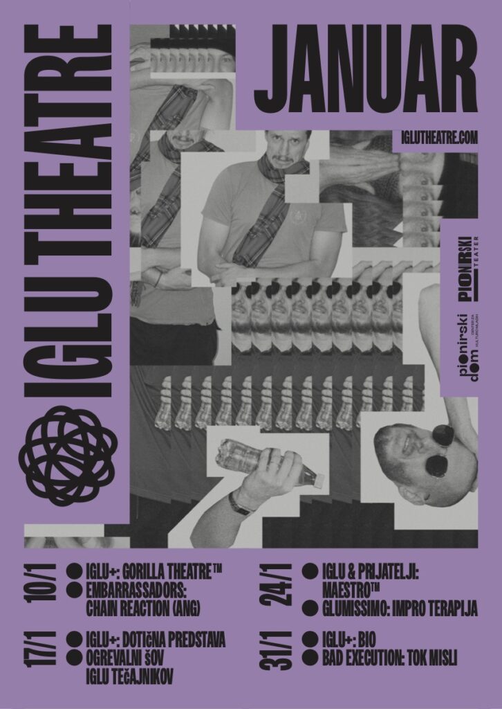 Zasedba IGLU redno izvaja predstave v Pionirskem teatru. Vsako soboto predstavljajo nove improvizirane formate, ki jih razvijajo znotraj kolektiva IGLU+. Pogosto sodelujejo znanimi slovenskimi ustvarjalci iz različnih področij performativne umentosti. V goste pa pogosto povabijo priznane improvizatorje iz celega sveta, ki se v Ljubljani ustavijo na svoji evropski turneji ali pa iz različnih evropskih mest sem priletijo samo za to priložnost.